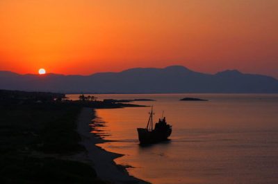 Valtaki beach is 5 km north of Gytheio and is sometimes referred to as Selinitsa beach, which is the name of another beach next to it. You will recognize Valtaki the wreck near the coast, it is visible from the road.
